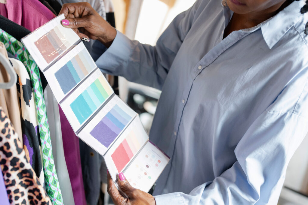 専任のパタンナーがデザインの意図を汲み取り、着心地やシルエットにこだわった型紙を作成します。